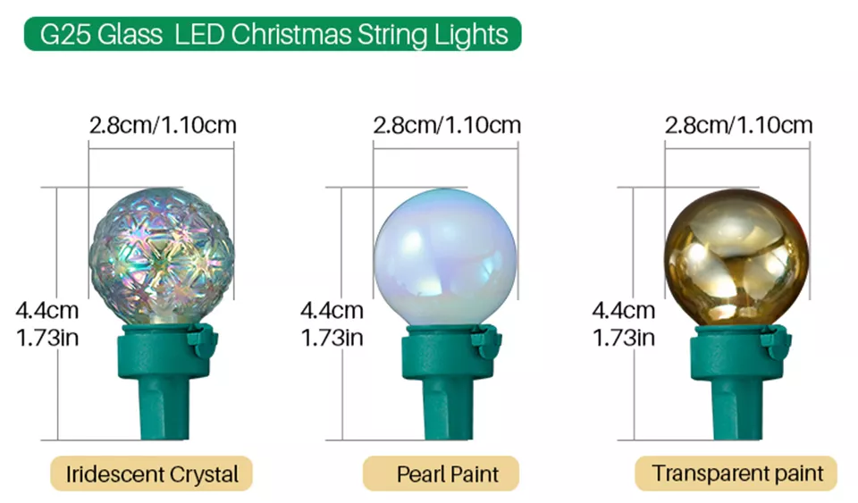 Customizable G25 LED Globe String Lights - 25/35/50CT Iridescent Crystal Glass, UL Certified, Direct from the Manufacturer for Magical Christmas Decor